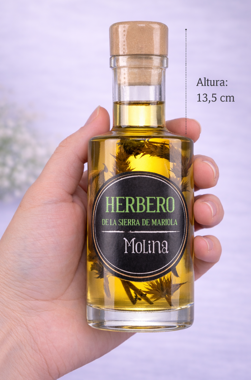 Cada miniatura d'Herbero amaga una acurada selecció d'herbes macerades en alcohol, que reflecteixen la riquesa i tradició de la Serra de Mariola. El sabor autèntic i l'aroma envoltant fan d'aquest licor una elecció ideal per brindar en ocasions especials.