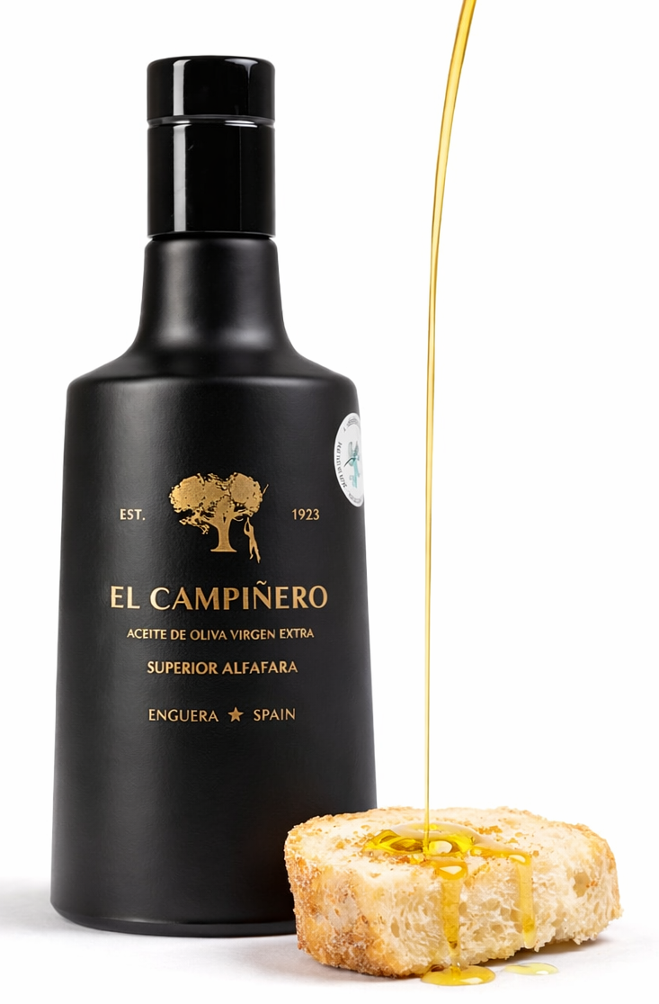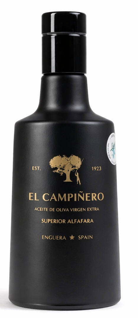 La varietat Alfafara és un oli de sabor intens i caràcter robust. Presentat en una elegant ampolla negra, el seu perfil sensorial es defineix per notes amargues i picants, amb matisos herbacis i tocs de fruita seca com ametlla i carxofa. Aquesta elecció és perfecta per als que busquen un oli amb personalitat i un gust fresc i complex.