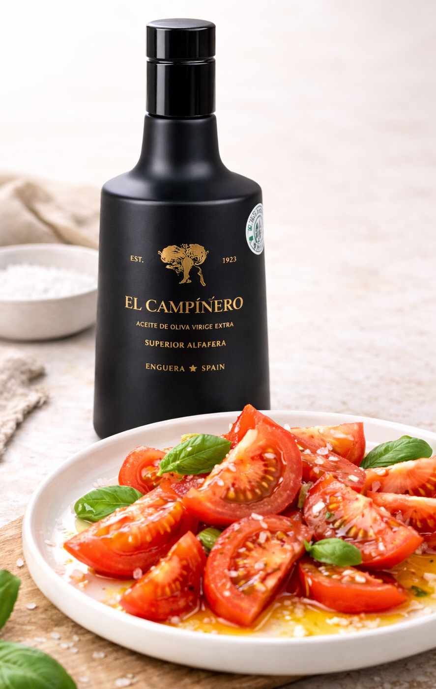 Descobreix la selecció d'olis d'oliva verge extra El Campiñero, un producte artesanal elaborat a Enguera que destaca per la qualitat i la presentació. Cada varietat es presenta en una ampolla de diferent color, acuradament dissenyada per ressaltar la seva personalitat i protegir l'oli de la llum. Aquesta sofisticada presentació no només reflecteix la seva excel·lència, sinó que també garanteix la preservació del sabor i les propietats. naturals.