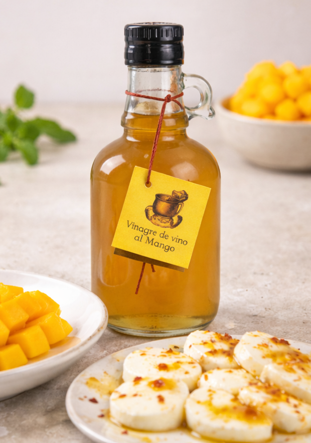 El Vinagre al Mango és una exquisida fusió de l'acidesa tradicional del vinagre amb la dolçor refrescant del mànec, creant una barreja innovadora i tropical. Perfecte per realçar el sabor dels teus plats, aquest vinagre és ideal per als que busquen un toc exòtic i afruitat a la cuina diària.