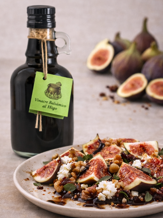 El Vinagre Balsàmic a la Figa combina la dolçor natural de la figa amb l'acidesa equilibrada del vinagre balsàmic, creant un perfil de sabor sofisticat i afruitat. Aquest vinagre és perfecte per donar un toc exòtic i dolç a les teves receptes, proporcionant una barreja equilibrada entre allò afruitat i l'àcid que realça qualsevol plat amb matisos profunds.