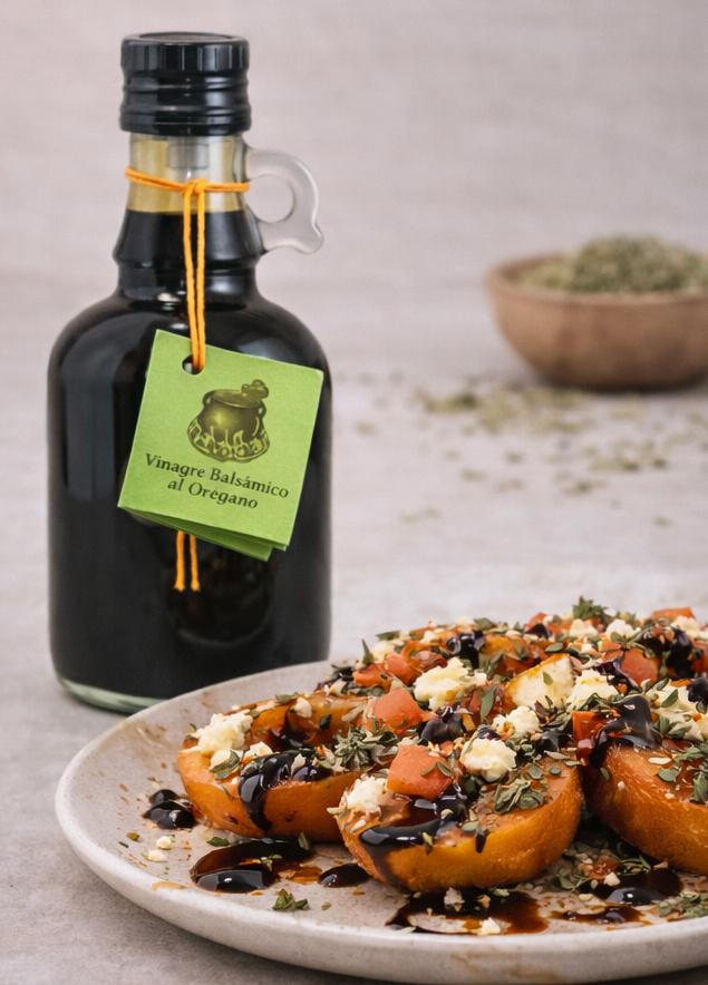 El Vinagre Balsàmic a l'Orenga és una deliciosa combinació de l'acidesa suau del vinagre balsàmic amb el toc aromàtic i herbal de l'orenga. Aquest vinagre ofereix un sabor equilibrat, fresc i ple de matisos mediterranis, ideal per als que busquen un condiment versàtil i ple de caràcter.