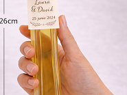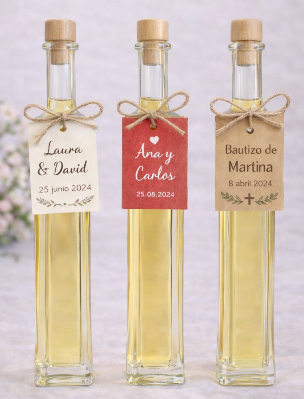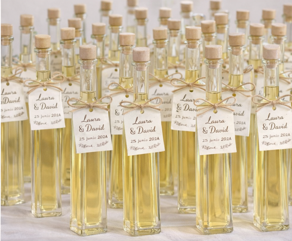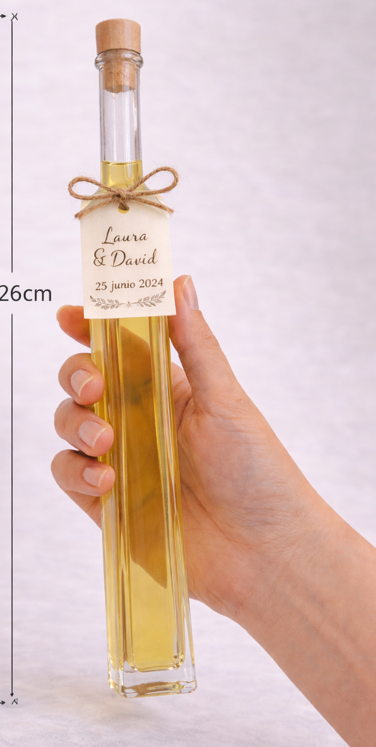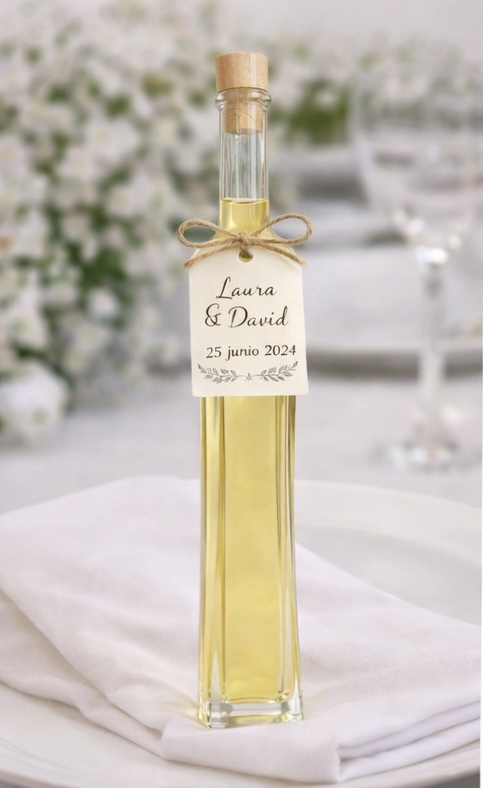 Este producto se realiza bajo pedido y se personaliza, permitiendo adaptar la etiqueta con nombres, fecha y tipo de evento, para crear un recuerdo único para tus invitados.