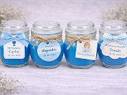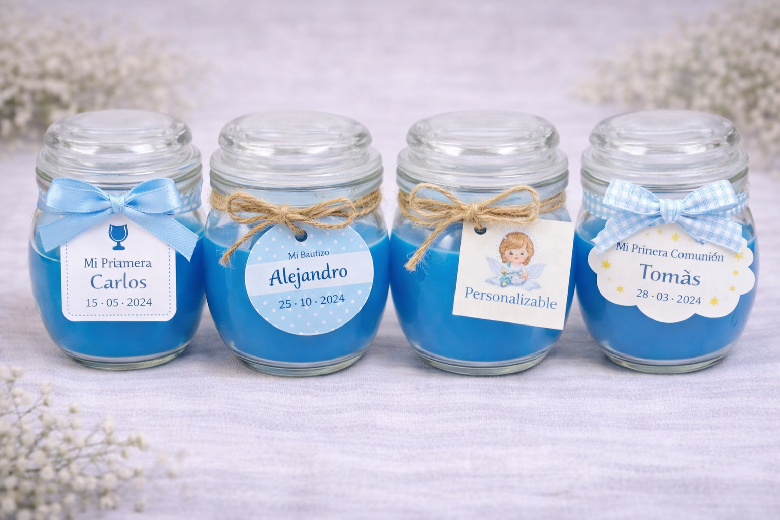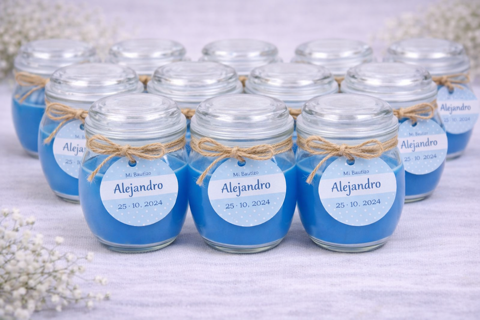 Las velas aromáticas personalizadas son un detalle versátil y práctico que los invitados valoran. Su diseño clásico y personalizable asegura que se convierta en un recuerdo especial de tu evento, dejando una impresión duradera.